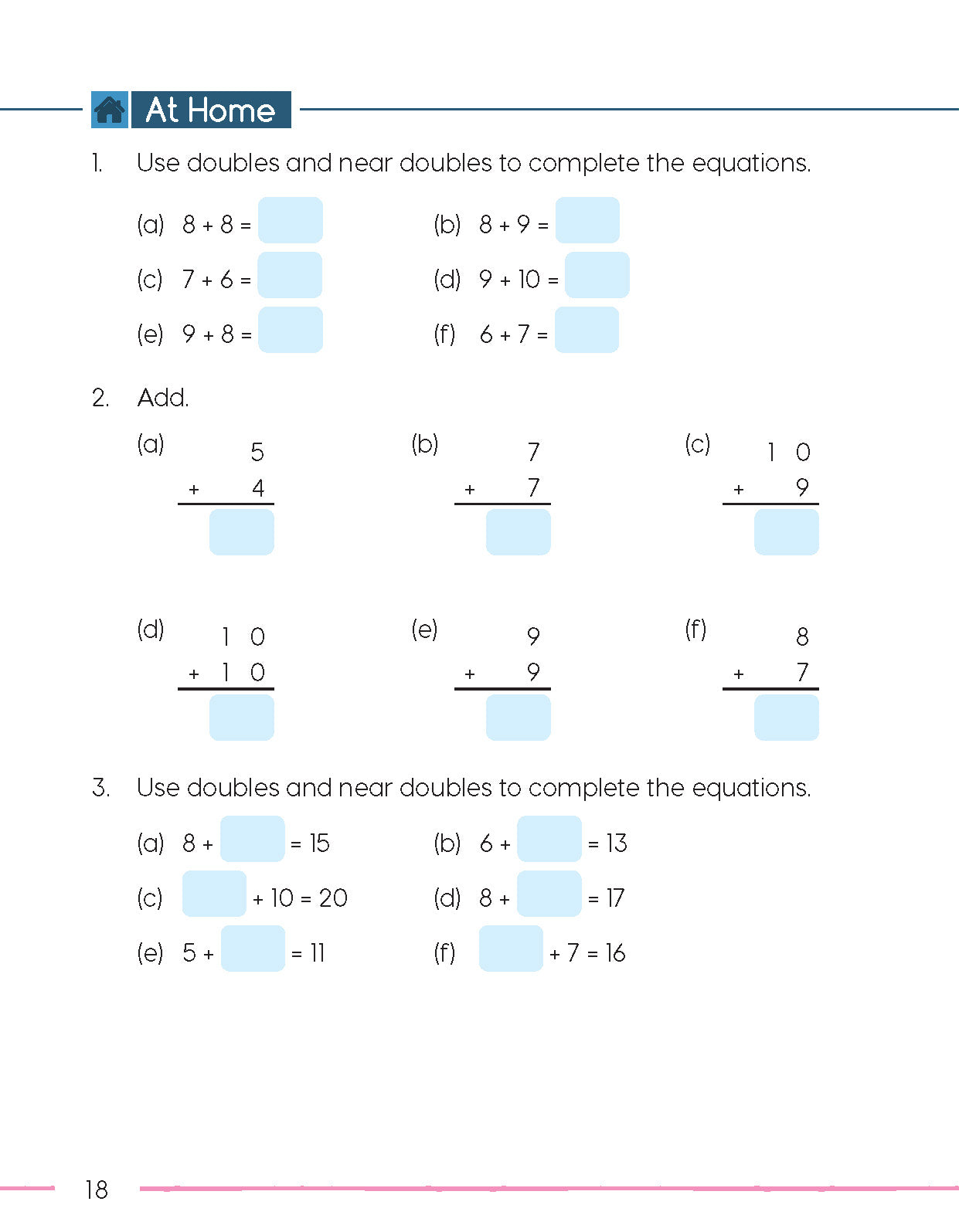 At Home: Further practice designed to be completed without the guidance of a teacher. Exercises and problems in this section follow on from those completed under Let’s Practice.