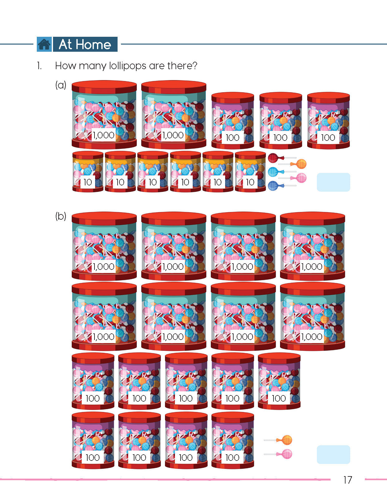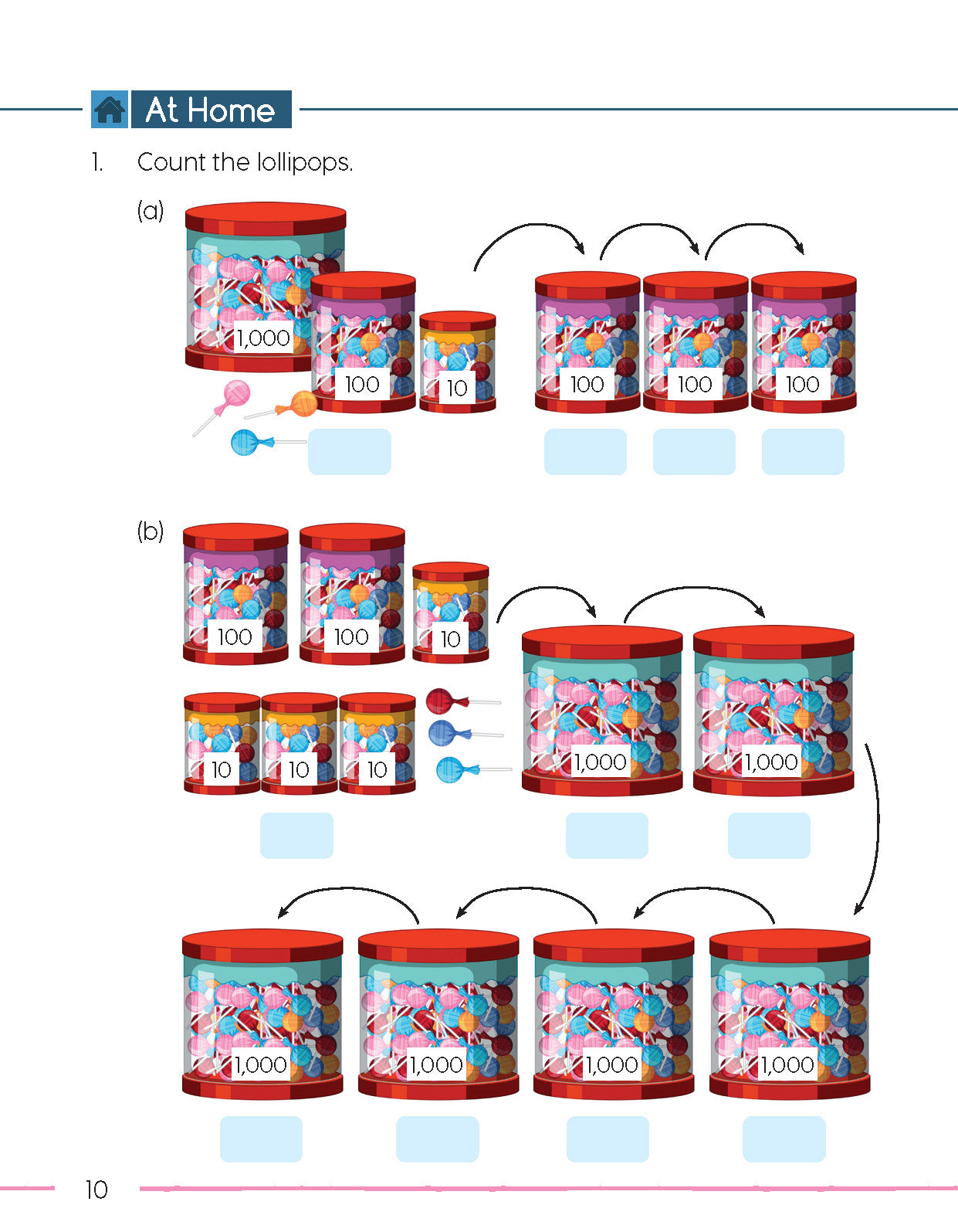 At Home: Further practice designed to be completed without the guidance of a teacher. Exercises and problems in this section follow on from those completed under Let’s Practice.