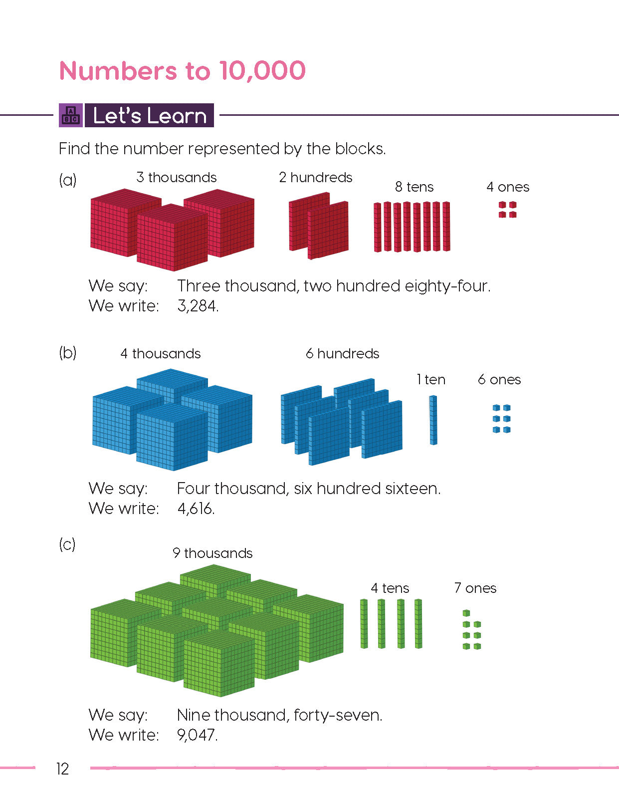 Let's Learn: Concepts are presented in a clear and colorful manner. Worked problems provide learners with guided step-by-step progression through examples. Series mascots provide guidance through helpful comments and observations when new concepts are introduced.