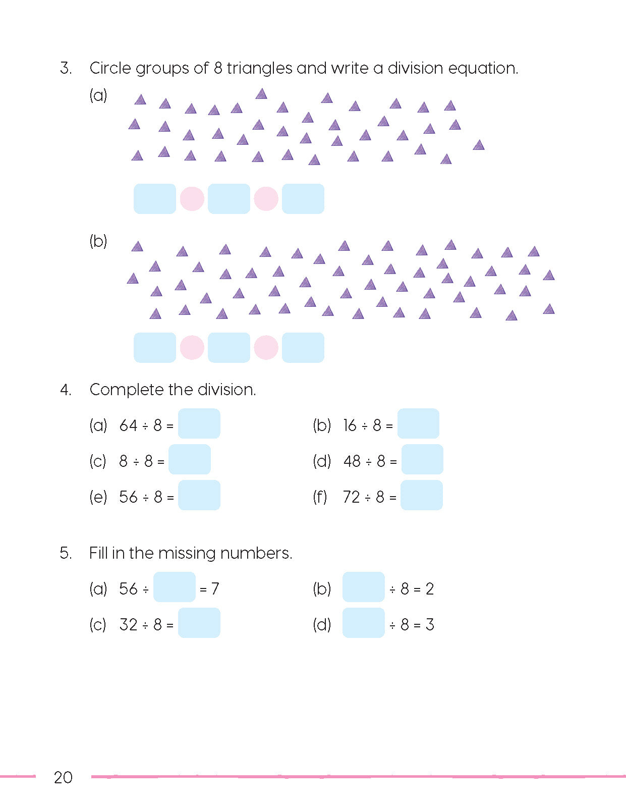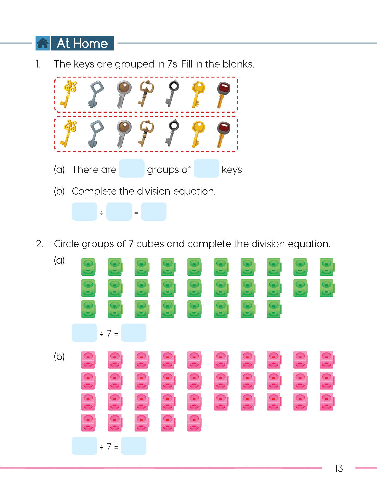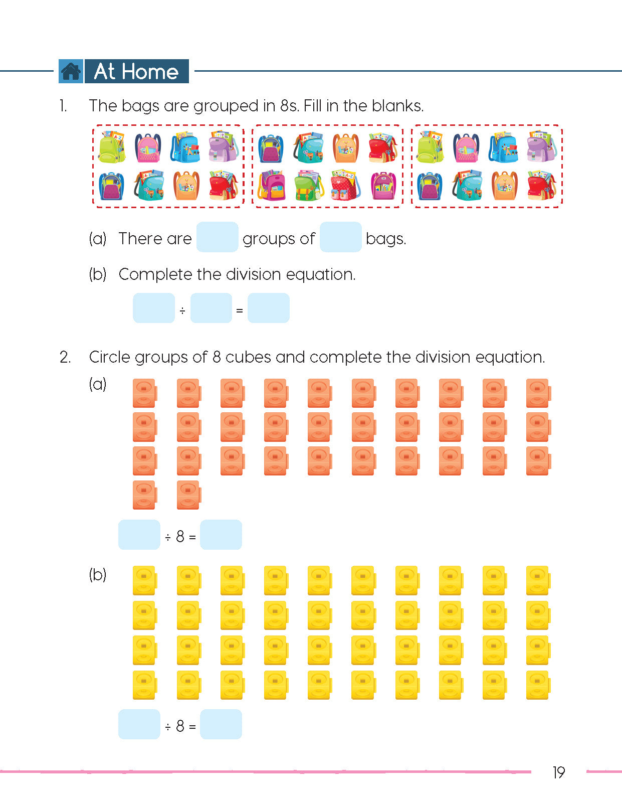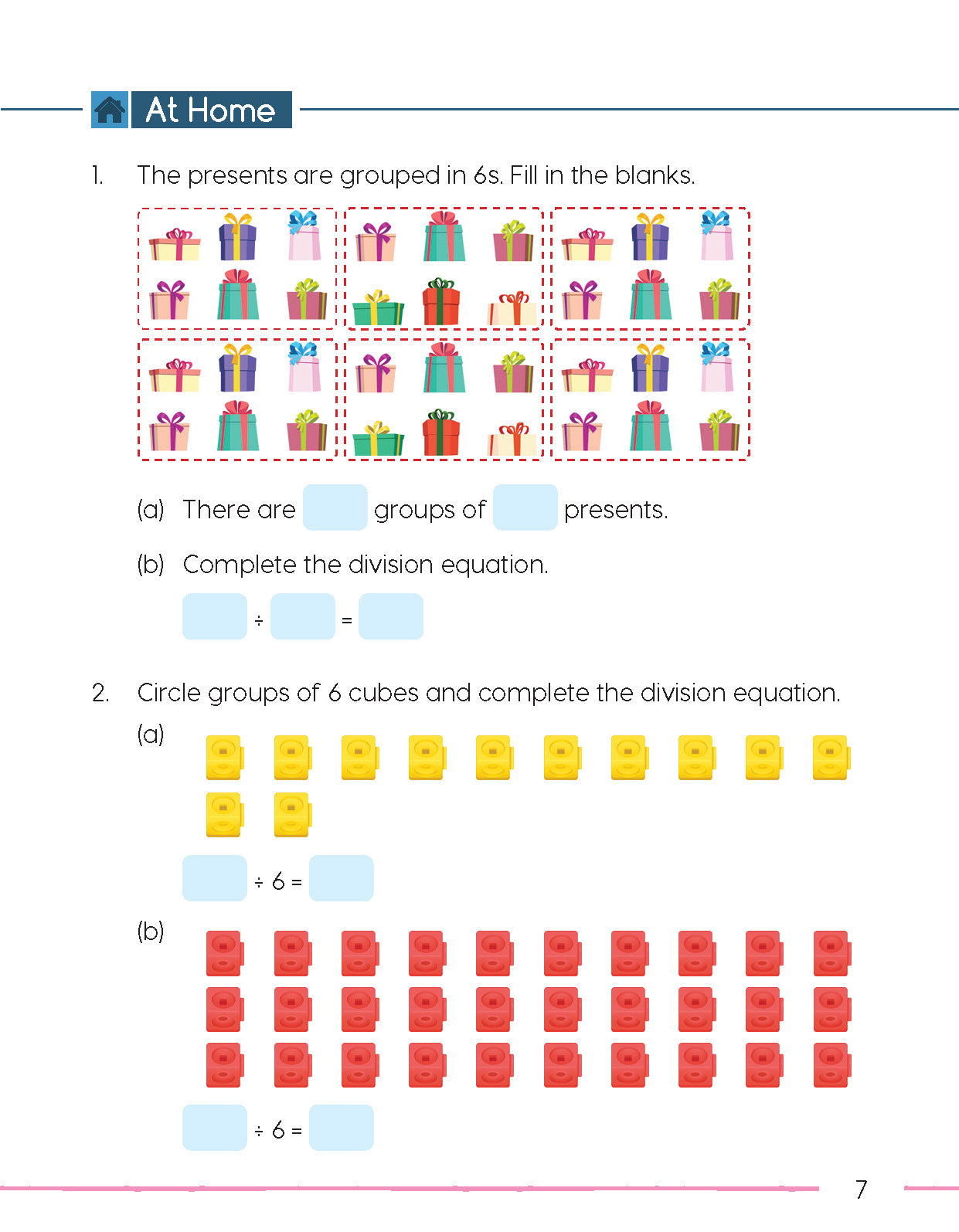 At Home: Further practice designed to be completed without the guidance of a teacher. Exercises and problems in this section follow on from those completed under Let’s Practice.